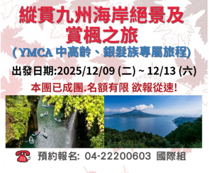 2025/12/09-12/13 縱貫九州海岸絕景及賞楓之旅,已成團,有興趣者歡迎盡速來電洽詢!